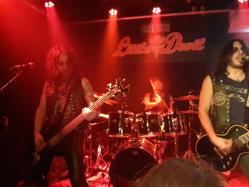 Sick of the competition, gossip and backstabbing in the scene, I decided to leave all the troubles and bullshit behind and go to the concerts I love to see. regardless of the promotor, let’s focus on the music and nice people who are there. After a few drinks and chats the 1st band Demonancy from Rome, Italy suprised me with their original style of old school Black/Death Metal in the spirit of early Darkthrone, Venom and Hellhammer. This threepiece, all around their 20’s had a great attitude and looked like real rockstars on stage. They were very enjoyable both musically and visually. I’m sure this is a band to keep your eye on. Too bad I didn’t have the money to buy any merch! After the first band we did a live interview with the Brazilian veterans of Vulcano, a legendary Black/Thrash band that started back in the early 80’s. The chat was very nice and we had a long and intense gossip about our common friend ‘Igor Lopes’. After the chat the drummer of Vulcano asked me for an extra snare, so I asked my friend ‘Niels’ from ‘Lunar Eclipse Bookings’ to get his snare from home. Unfortunately we missed ‘Profanatica’ from Chicago, U.S.A. But luckily I asked my friend ‘Scott’ to write a few lines about this killer band. Scott: I was at first sight intrigued by the visuals of the band. Kicking off a great wall of blackened sound was unleashed upon us. It was extremely raw and primitive and all hell broke loose. The crowd loved it and banged their heads for Satan. A great surprise to have seen them here in Tilburg. The guys are also very nice to hang out and drink a ‘Trappist’ with. Marco: Niels and I returned back to the venue with our bald headbanging friend, ‘Kees Grift’. We gave the snare to the guys and saw the end of Profanatica in front of our eyes. Anyway, more beers followed till’ Vulcano kicked off. First thing to admire is their status as one of the first evil Thrash bands from South America. And fuck! 62 year old and still raising hell, dedicated to the raw extreme underground. Drinking beer, surviving many kind of trends and sleeping on the couch of random fans. These veterans are truly dedicated to the scene and have my fullest respect. The way it should be! These guys still got it and burned the stage to the ground. Thanks to ‘William the Butcher’ for bringing them over to Tilburg! Love you more than you realise, you’re a true maniak, Cheers!